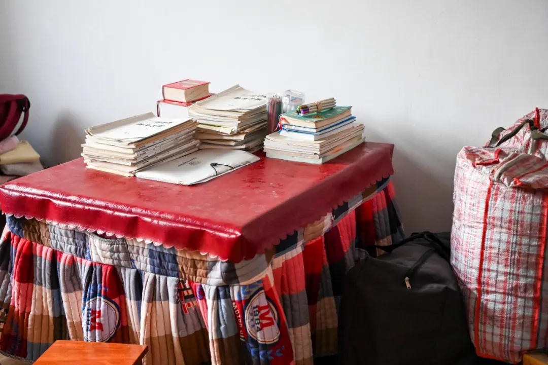 刘燕家的书桌上摆放着她的学习资料(6月13日摄)。