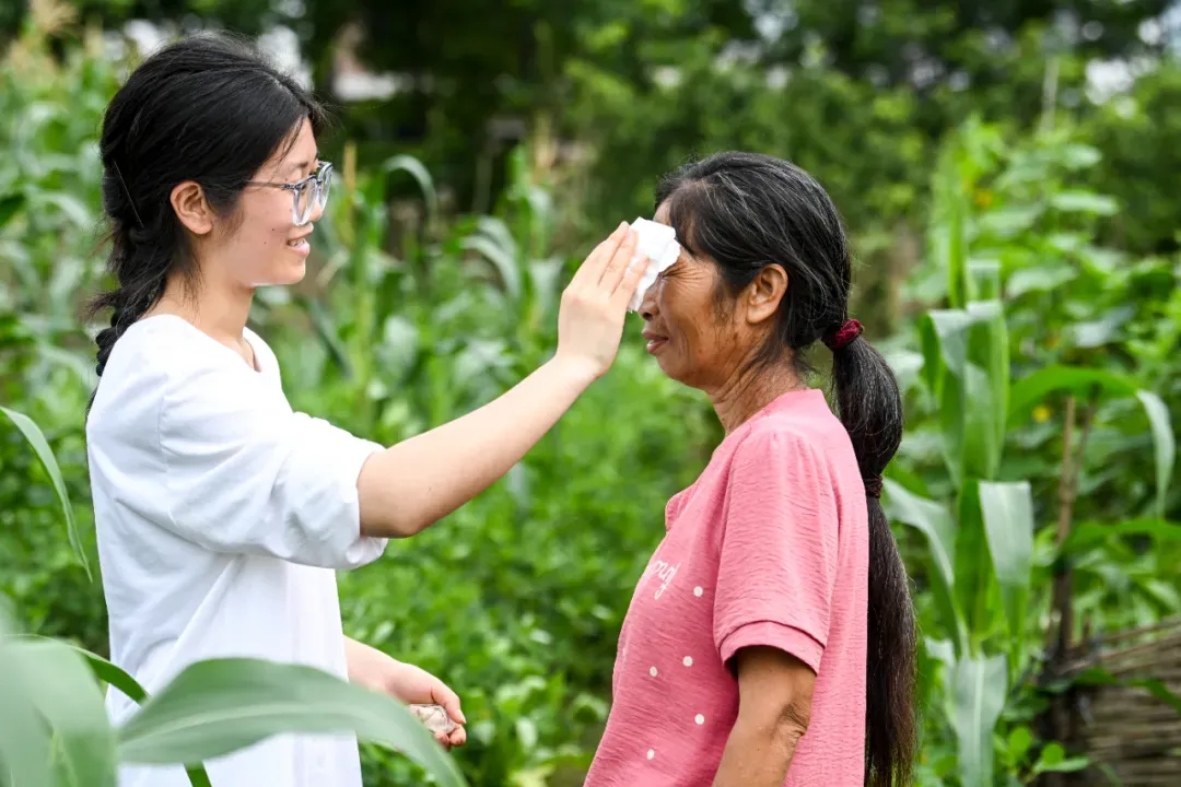 6月13日,刘燕(右)在她就读的高中为班主任陈庆隆送上鲜花。
