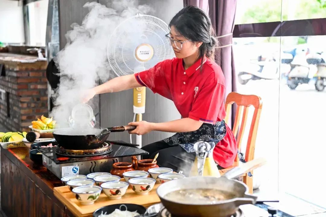 刘燕在打工的餐馆制作当地特色美食——油茶。