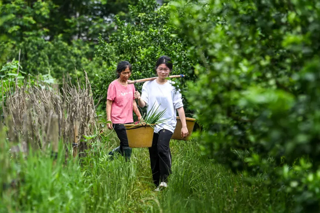 刘燕(右)在打工的餐馆向老板学习制作当地特色美食——油茶。